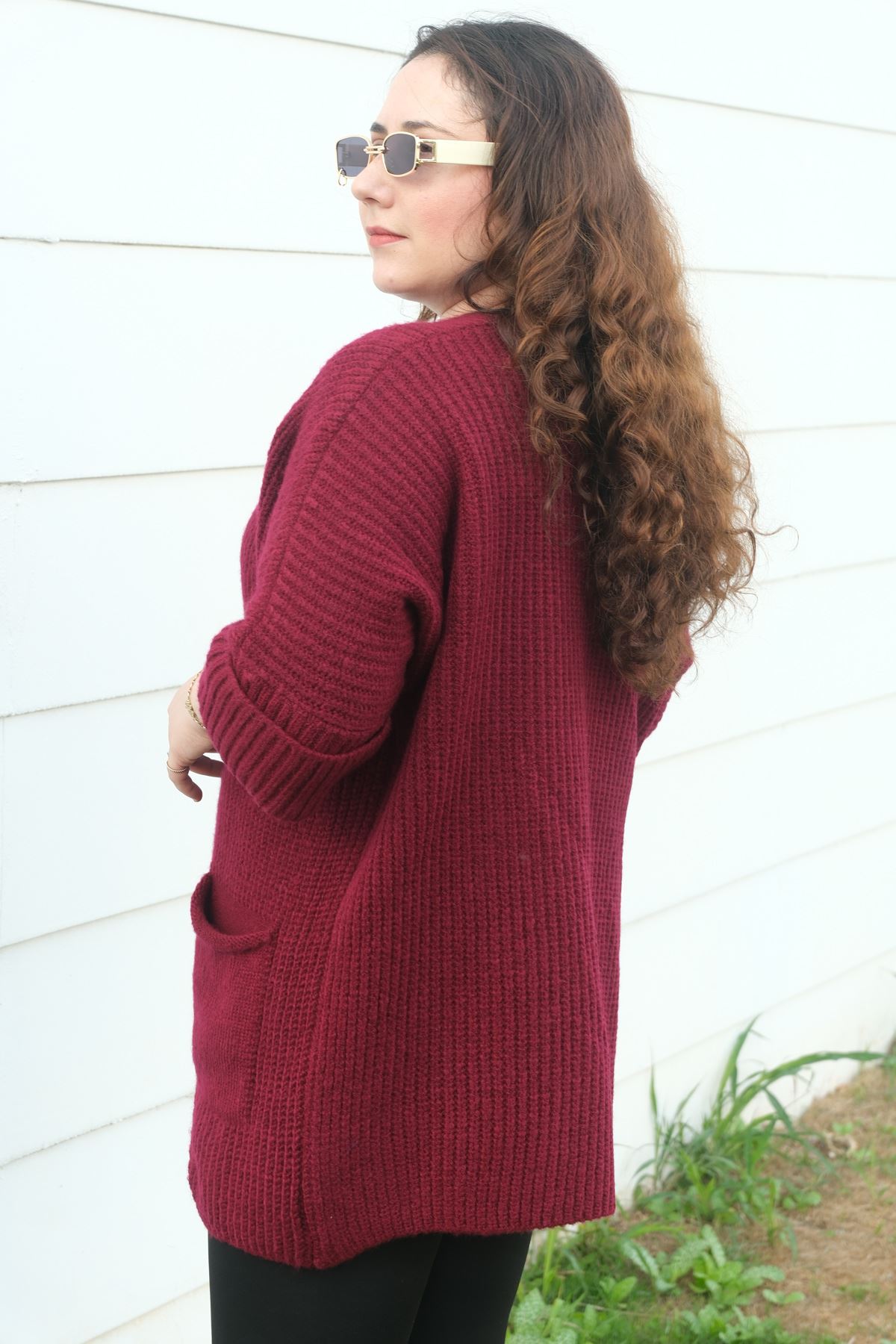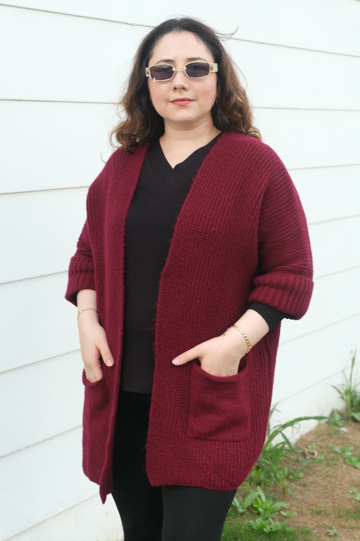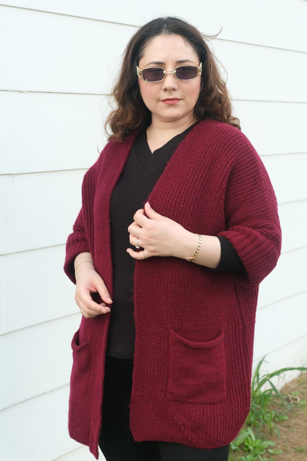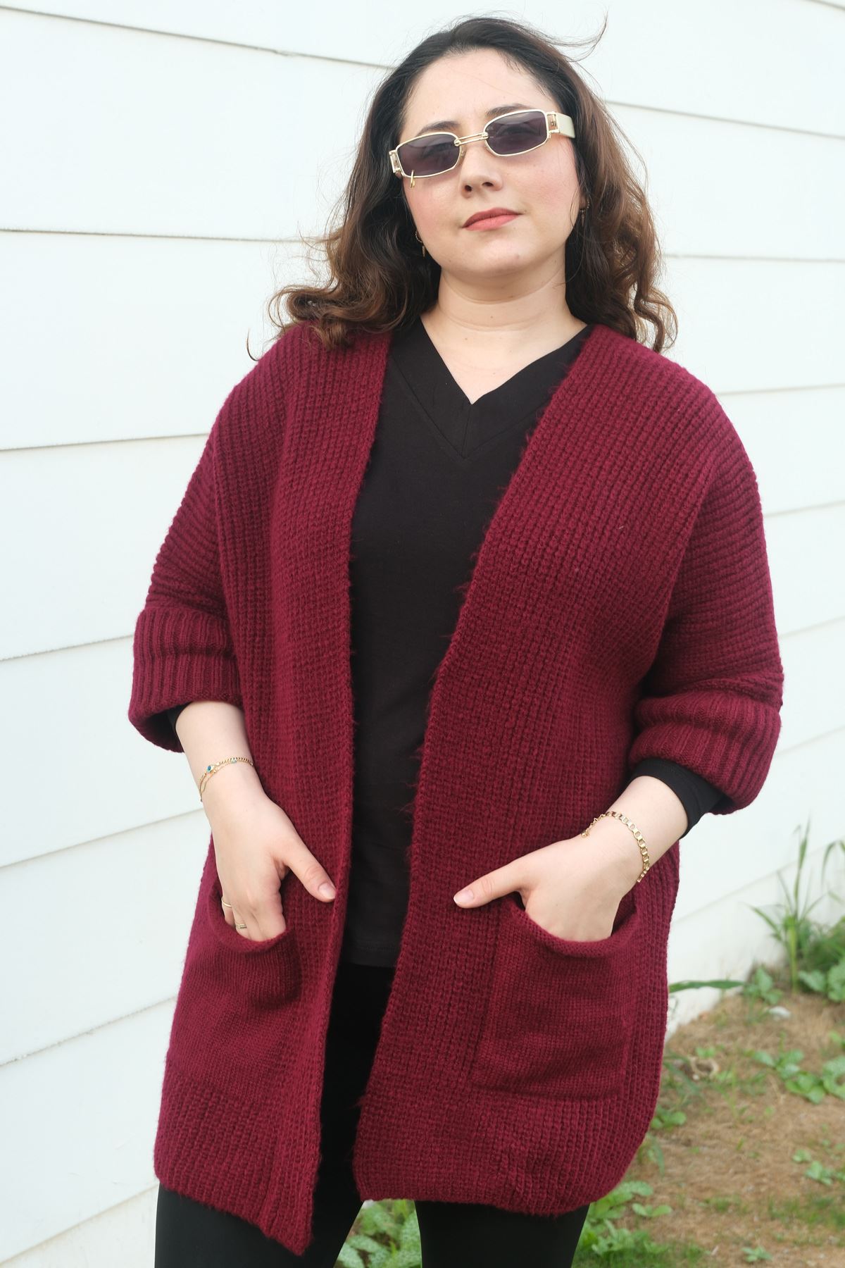 RENKTE BÜYÜK BEDEN BORDO CEPLİ HIRKA & CEKET
