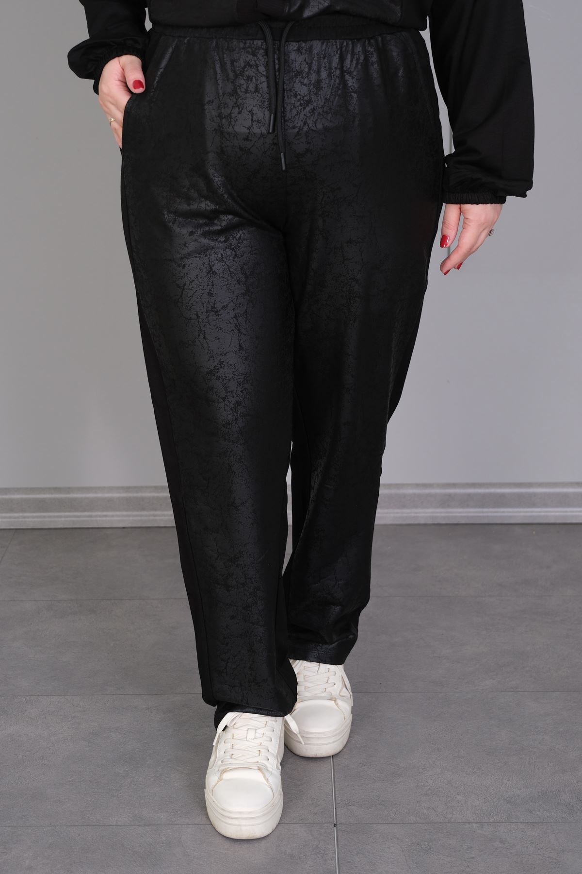 RENKTE BÜYÜK BEDEN BOL PAÇA SİYAH TENSEL GABARDİN PANTOLON