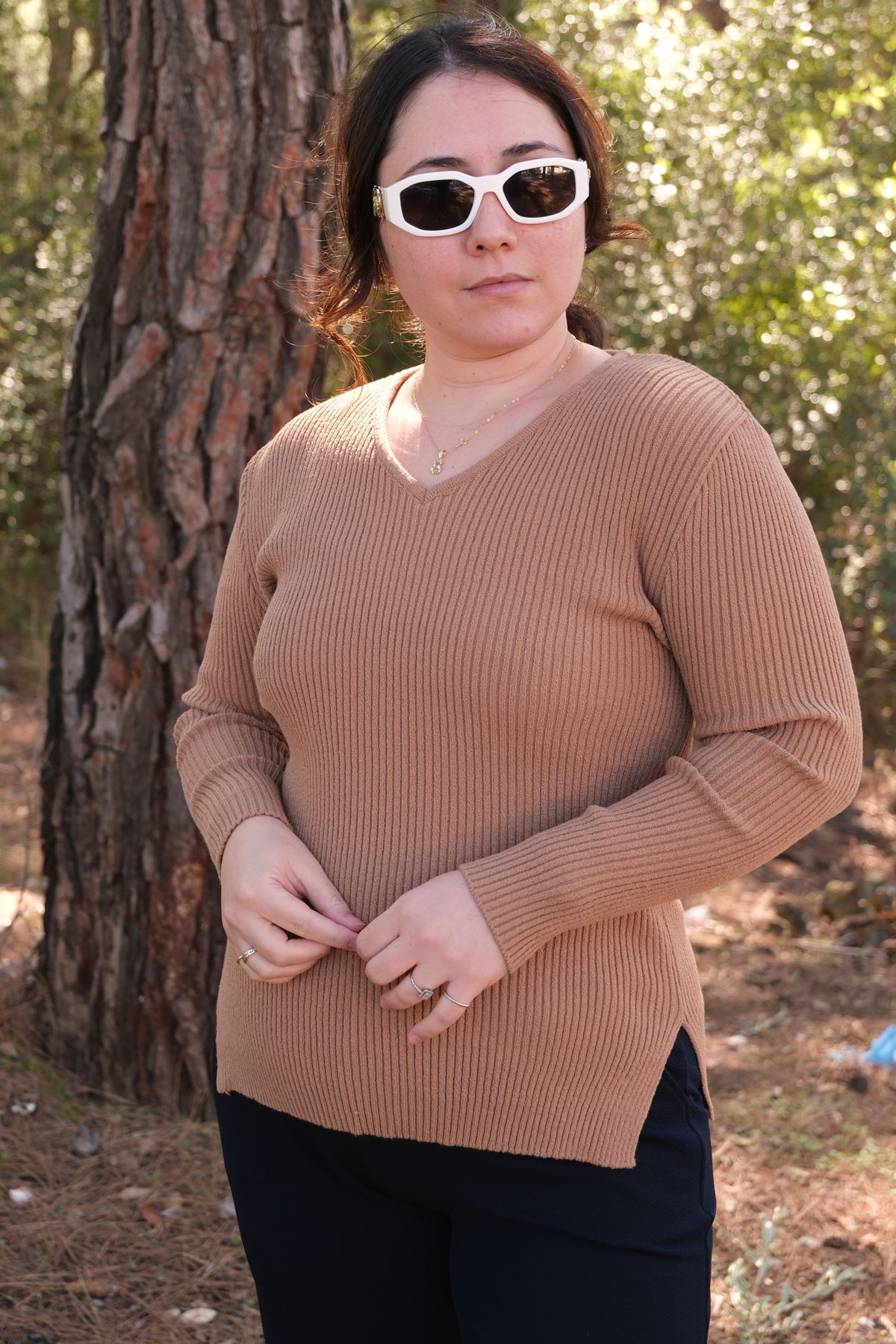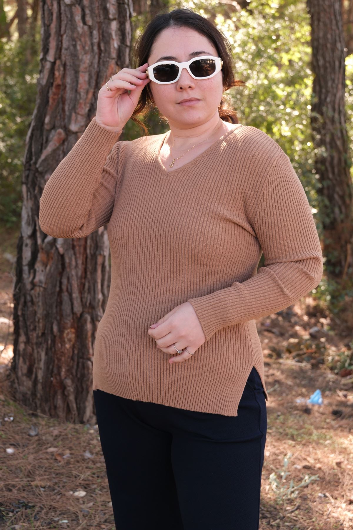 RENKTE BÜYÜK BEDEN ESNEK KAHVE TRİKO