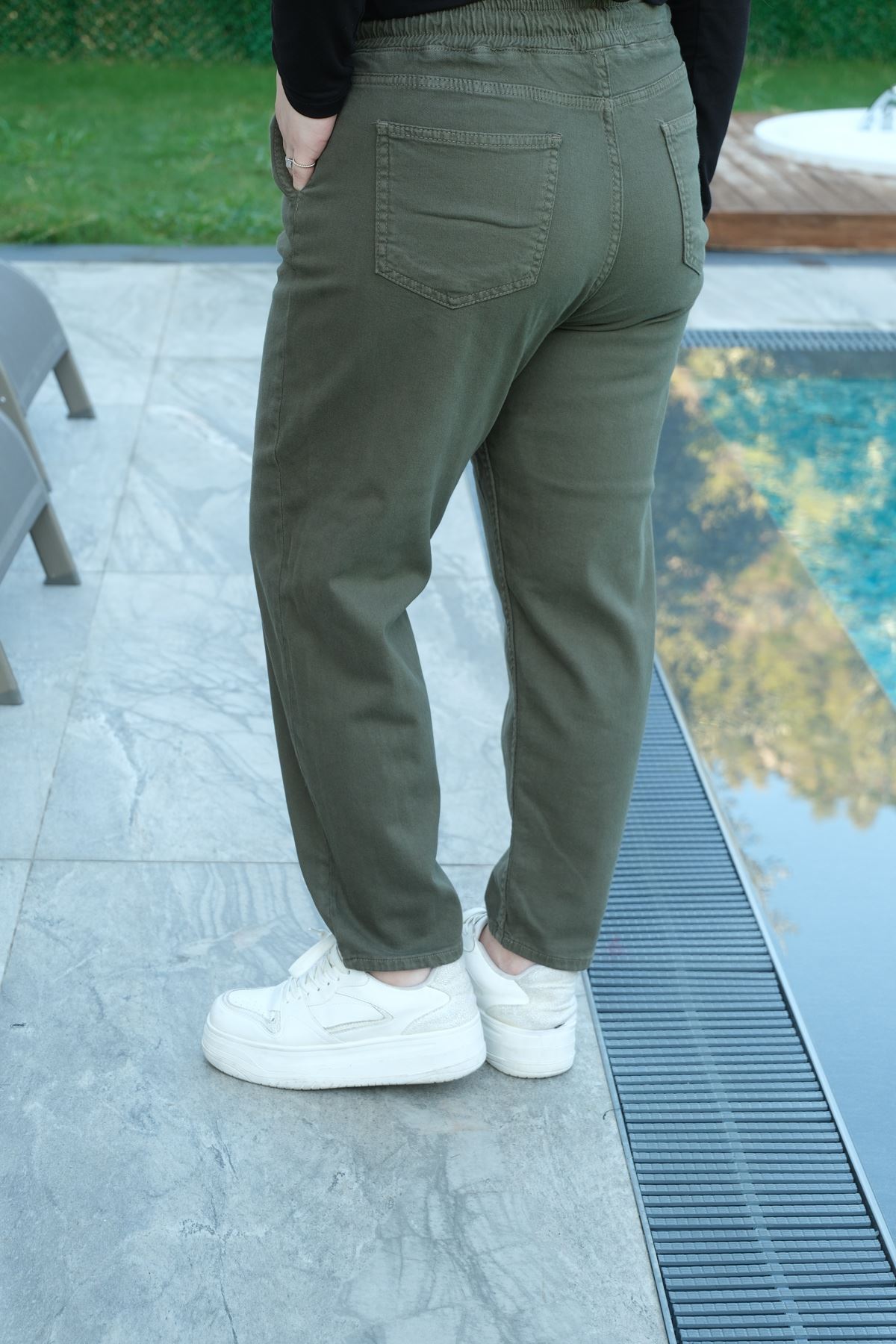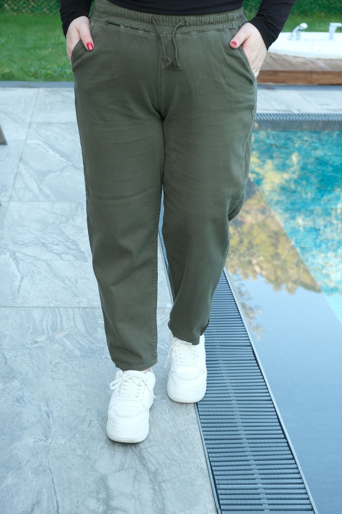 RENKTE BÜYÜK BEDEN HAKİ DAR PAÇA TENSEL GABARDİN PANTOLON