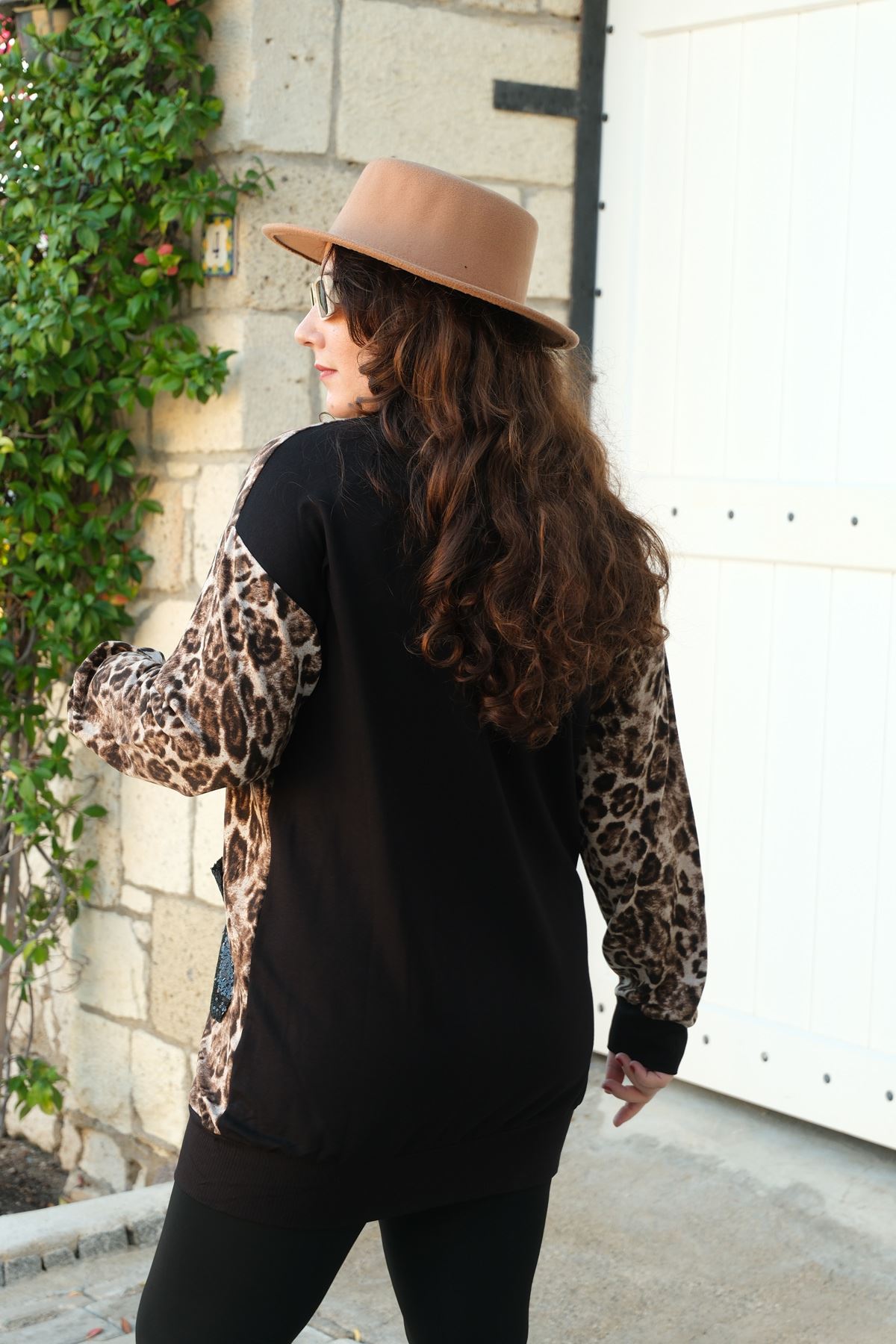RENKTE BÜYÜK BEDEN LEOPAR DESEN PAYETLİ CEKET