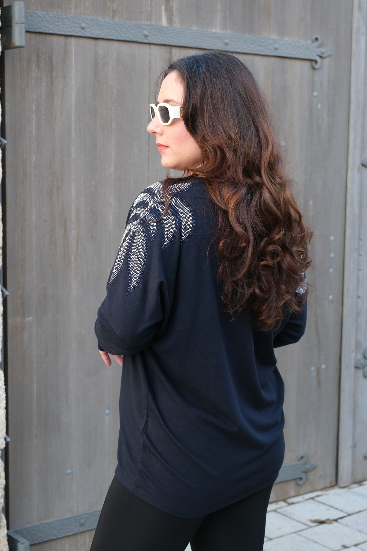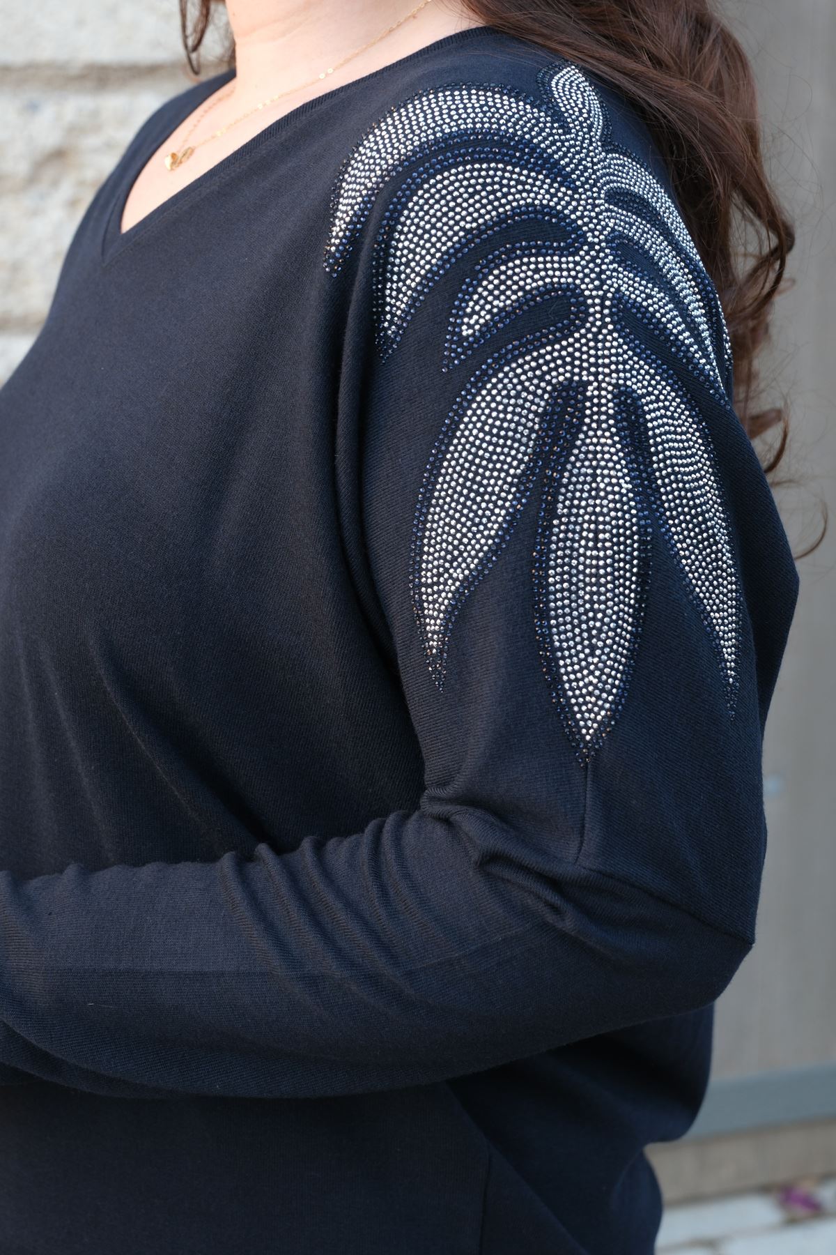 RENKTE BÜYÜK BEDEN OMUZLAR TAŞLI LACİVERT BLUZ