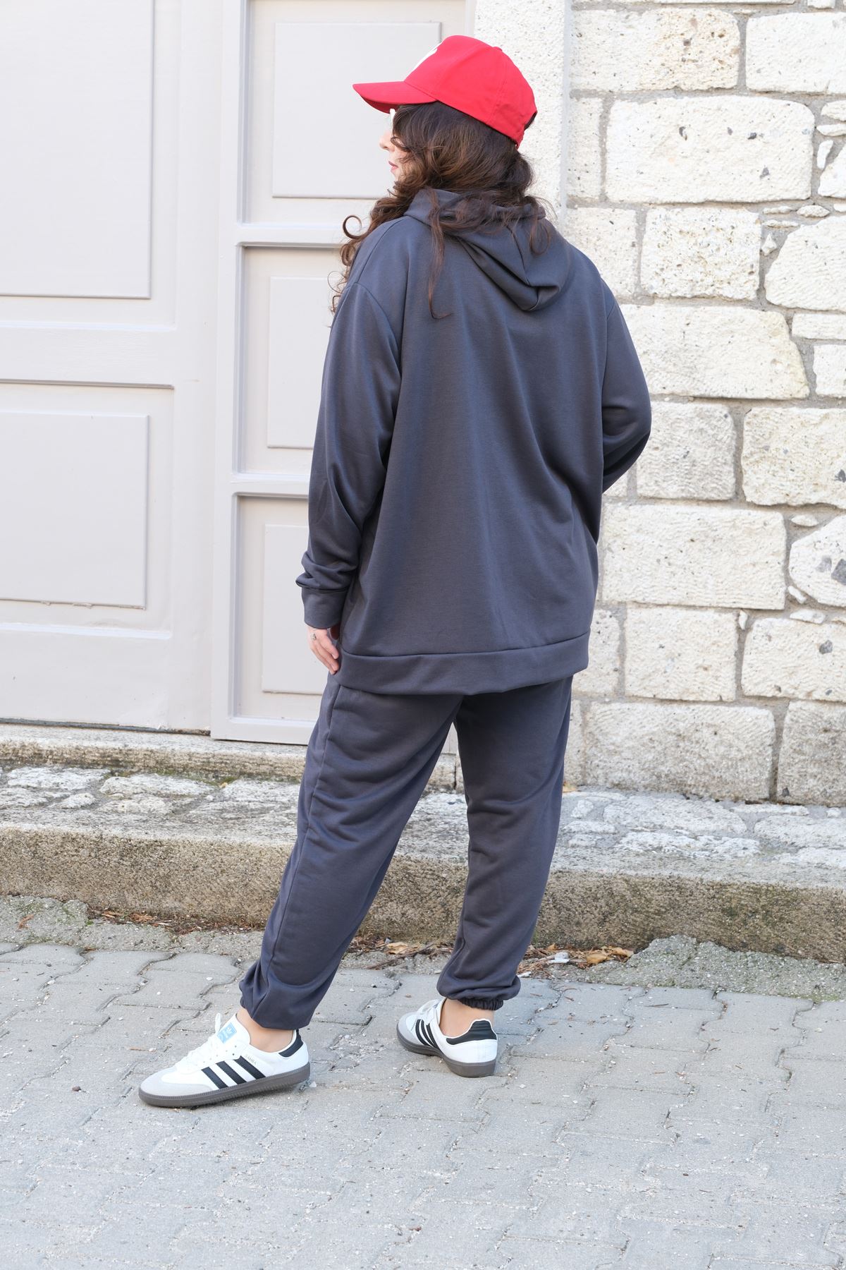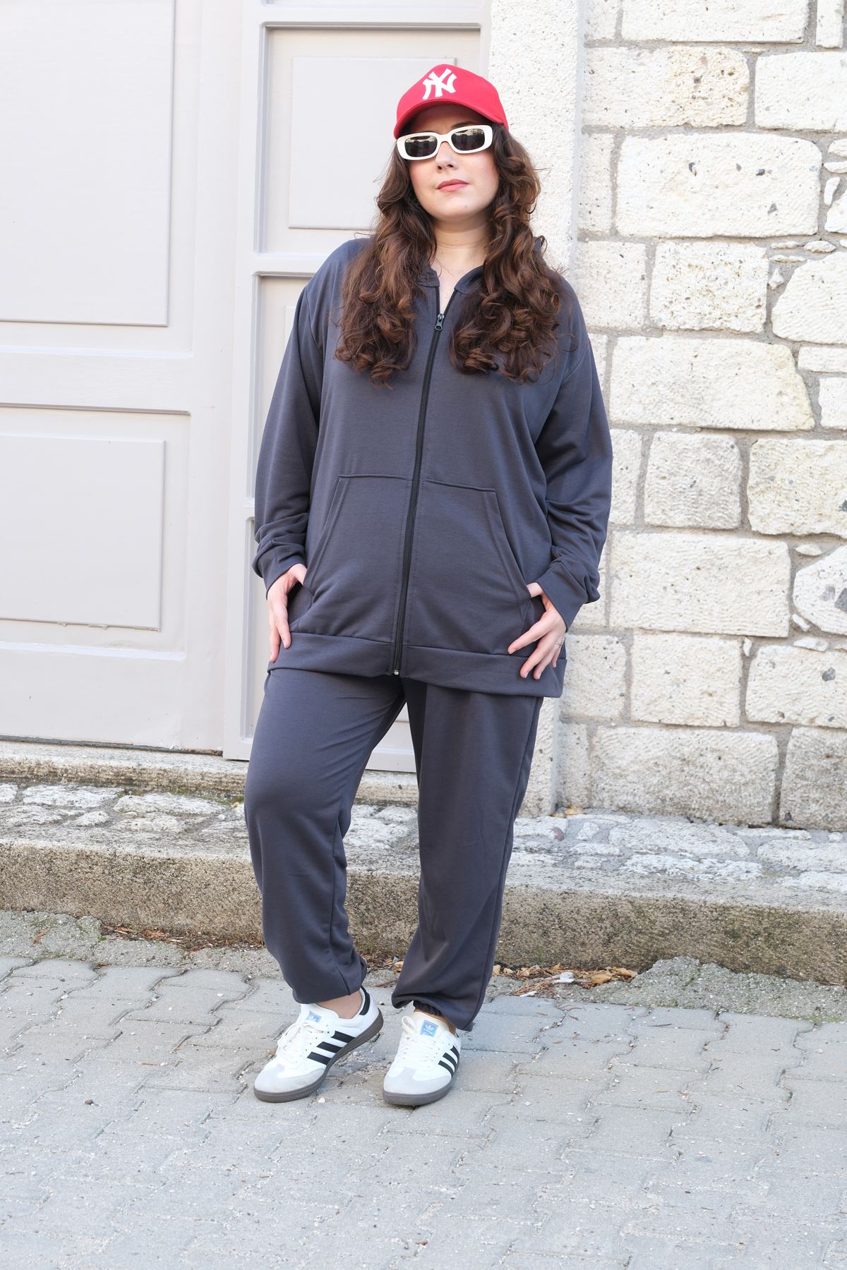 RENKTE BÜYÜK BEDEN ÖZEL ÜRETİM FERMUARLI ANTRASİT EŞOFMAN TAKIMI