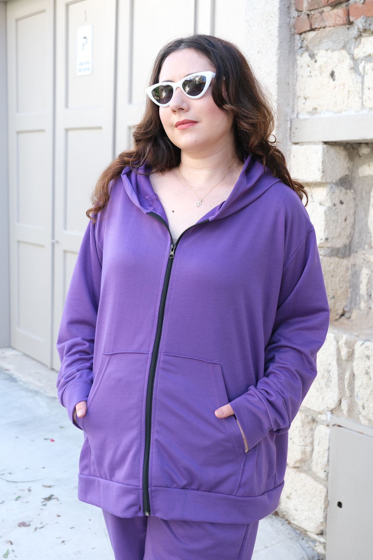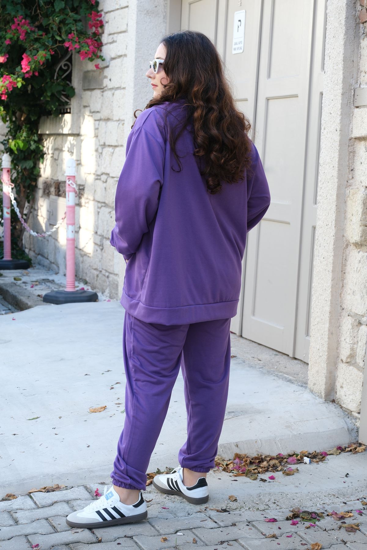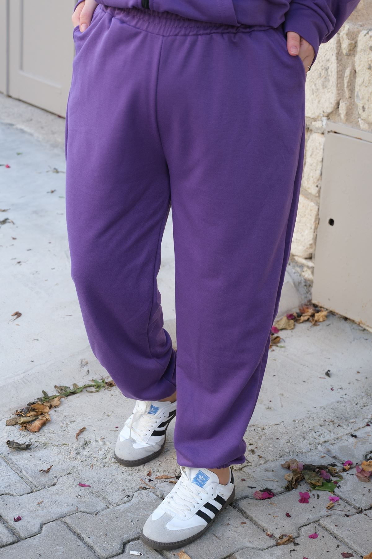 RENKTE BÜYÜK BEDEN ÖZEL ÜRETİM FERMUARLI MOR EŞOFMAN TAKIMI