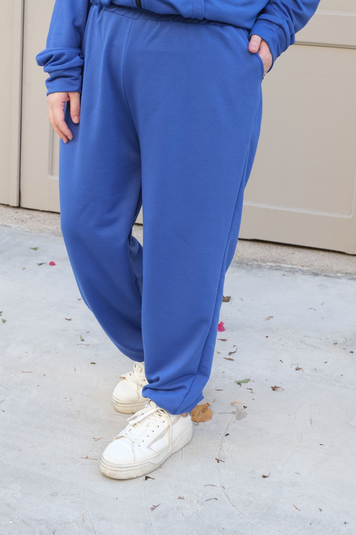 RENKTE BÜYÜK BEDEN BİYE DETAYLI LACİVERT EŞOFMAN TAKIMI