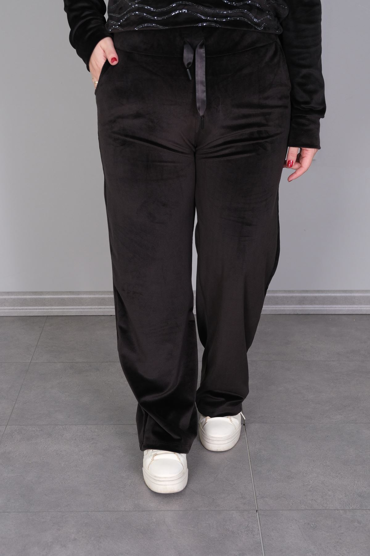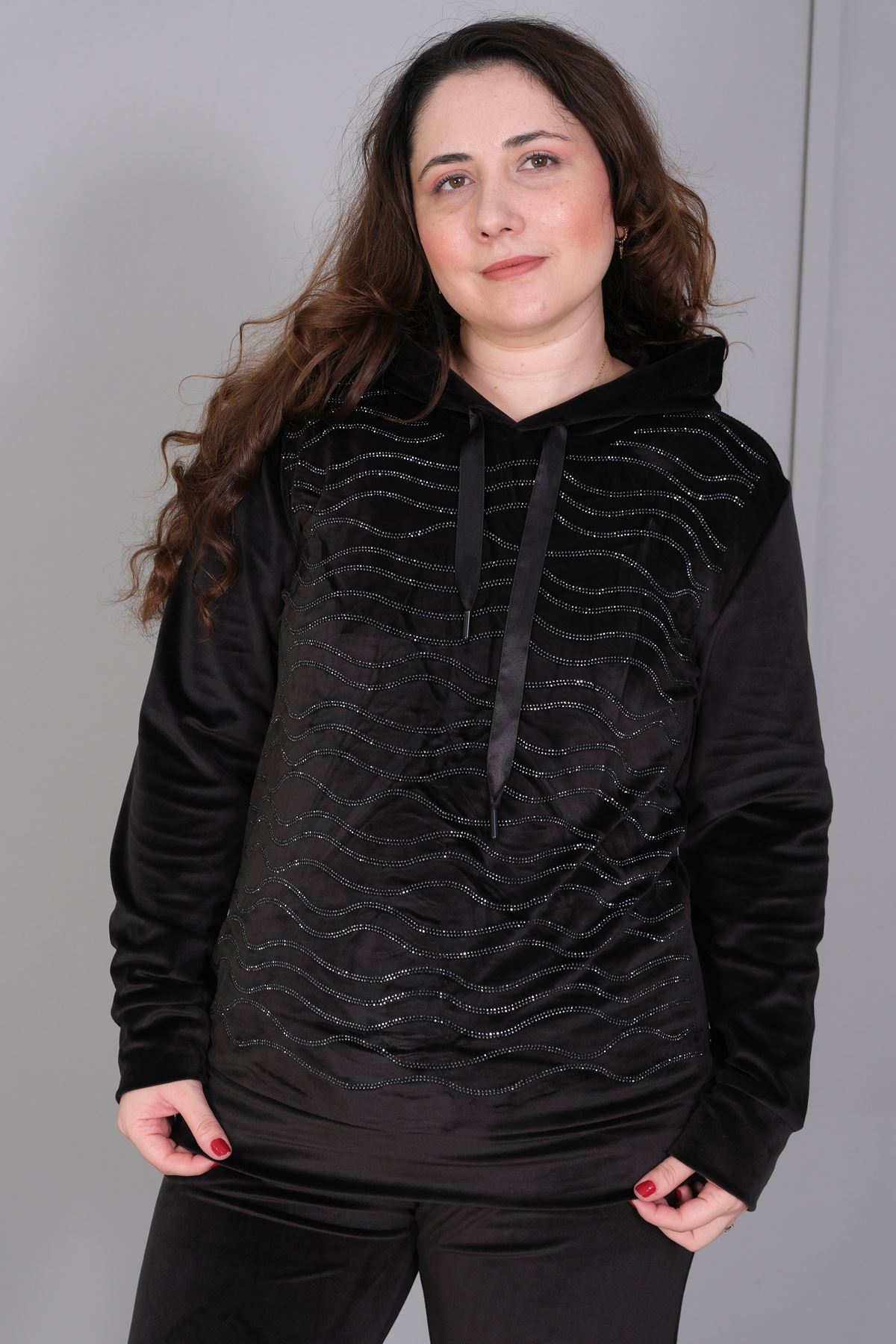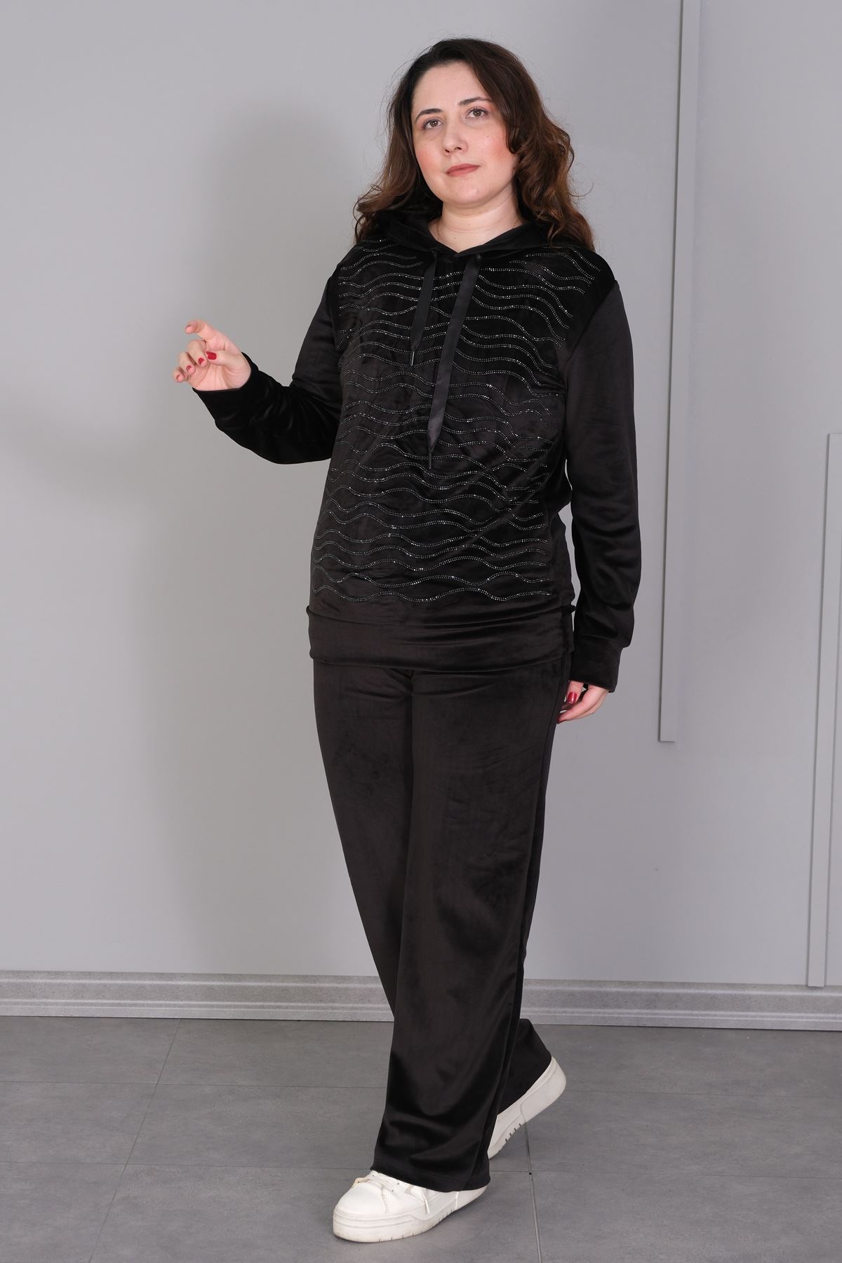 RENKTE BÜYÜK BEDEN TAŞ İŞLEMELİ PREMİUM SİYAH KADİFE TAKIM