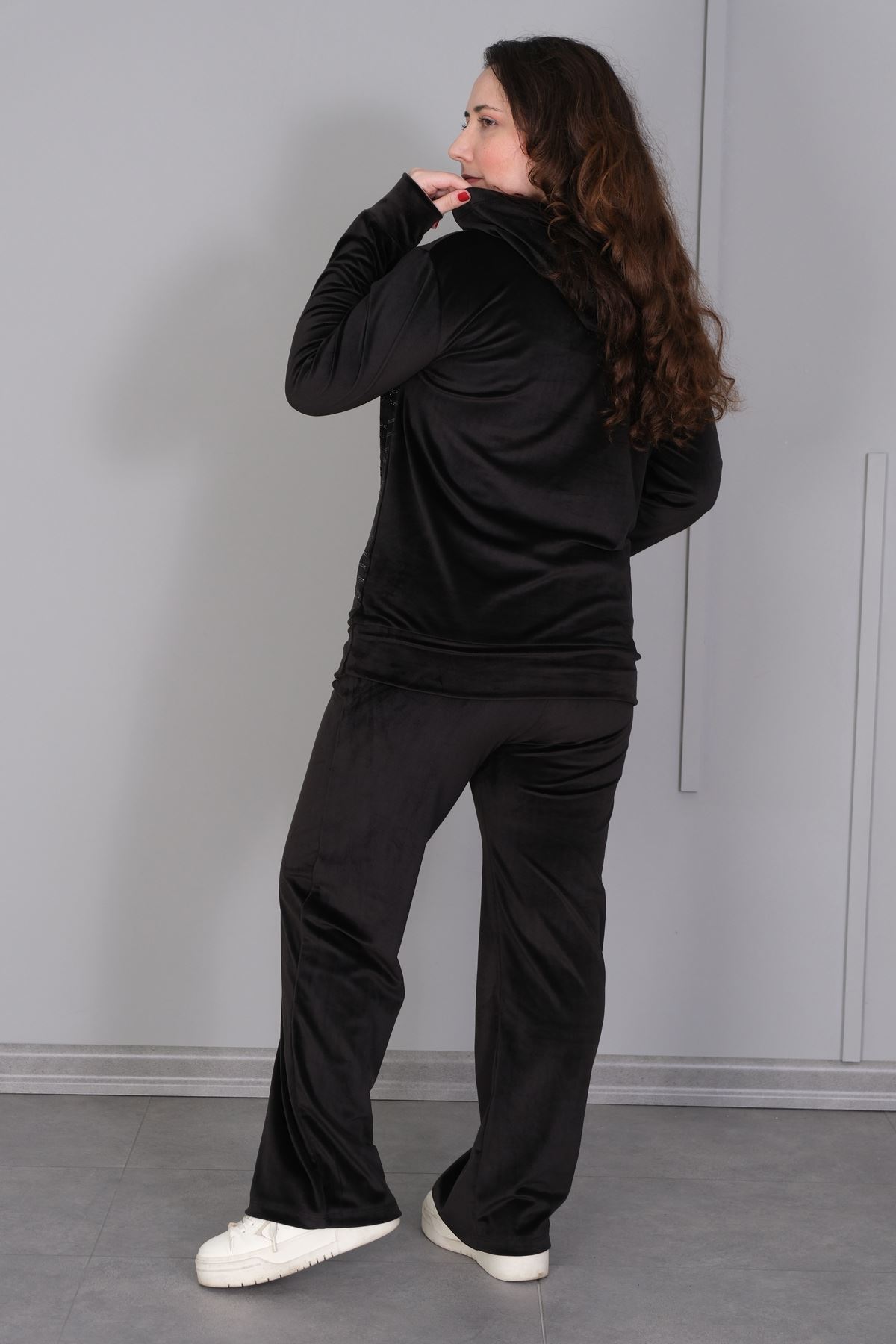 RENKTE BÜYÜK BEDEN FERMUARLI PREMİUM SİYAH KADİFE TAKIM