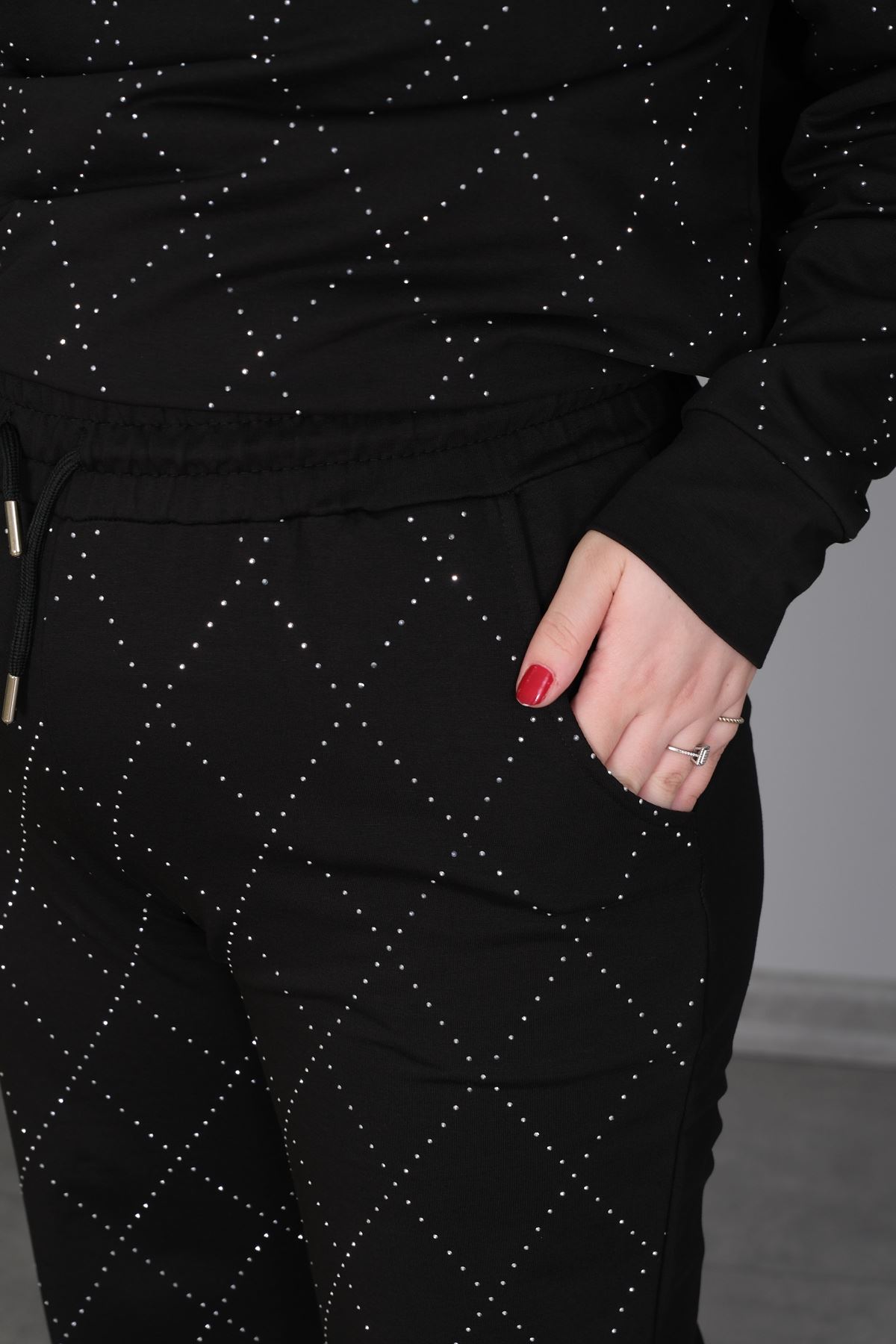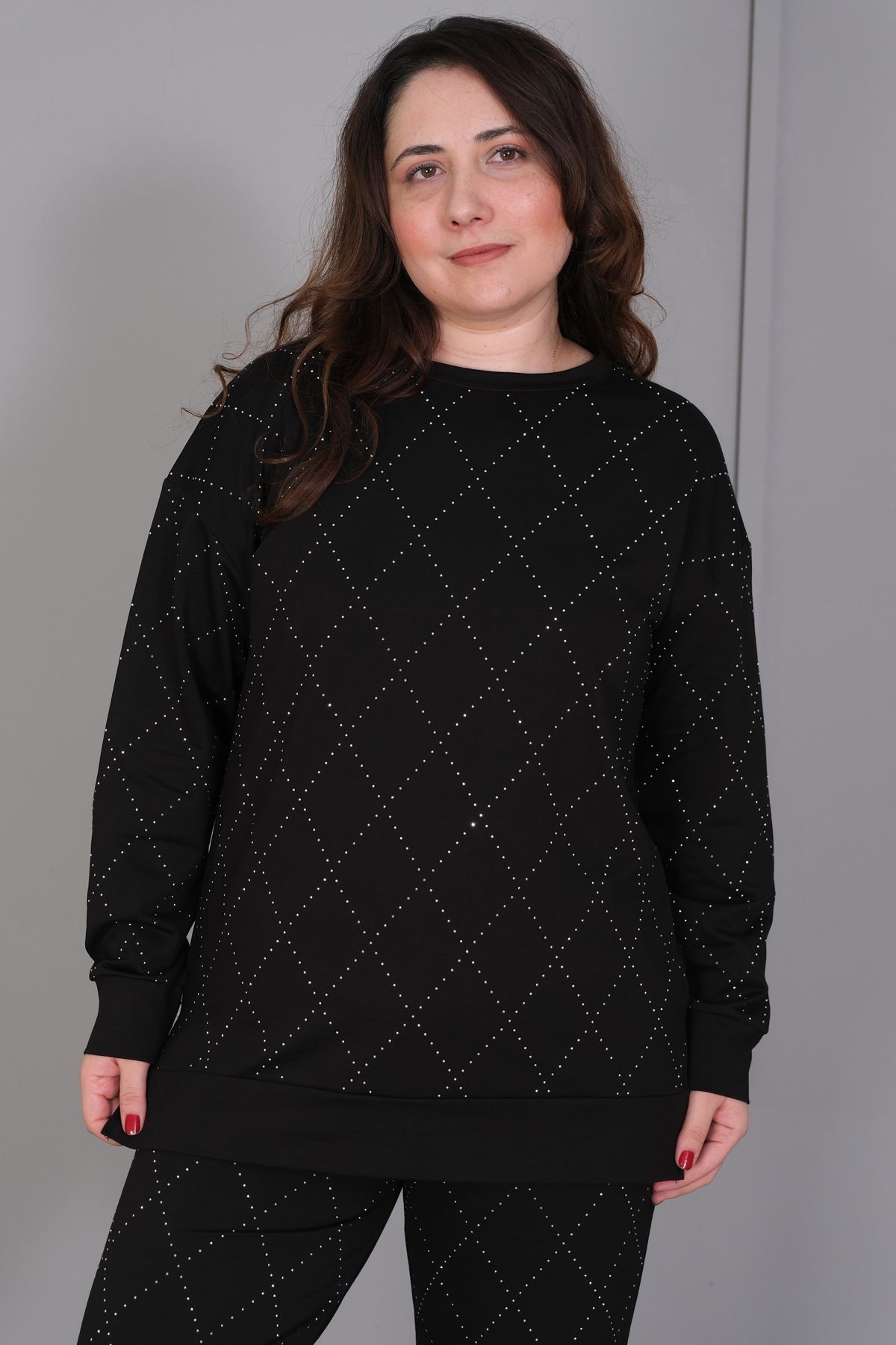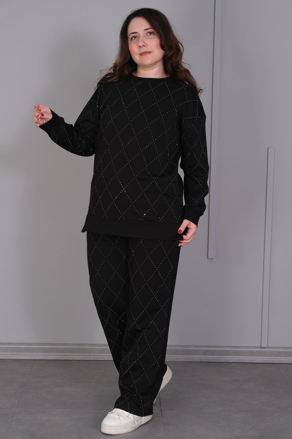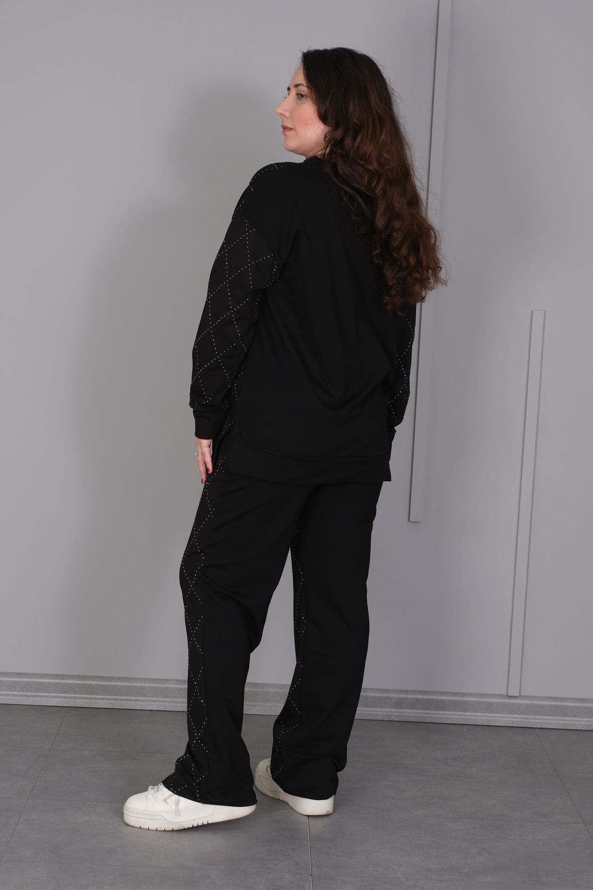 RENKTE BÜYÜK BEDEN TAŞ İŞLEMELİ SİYAH TAKIM