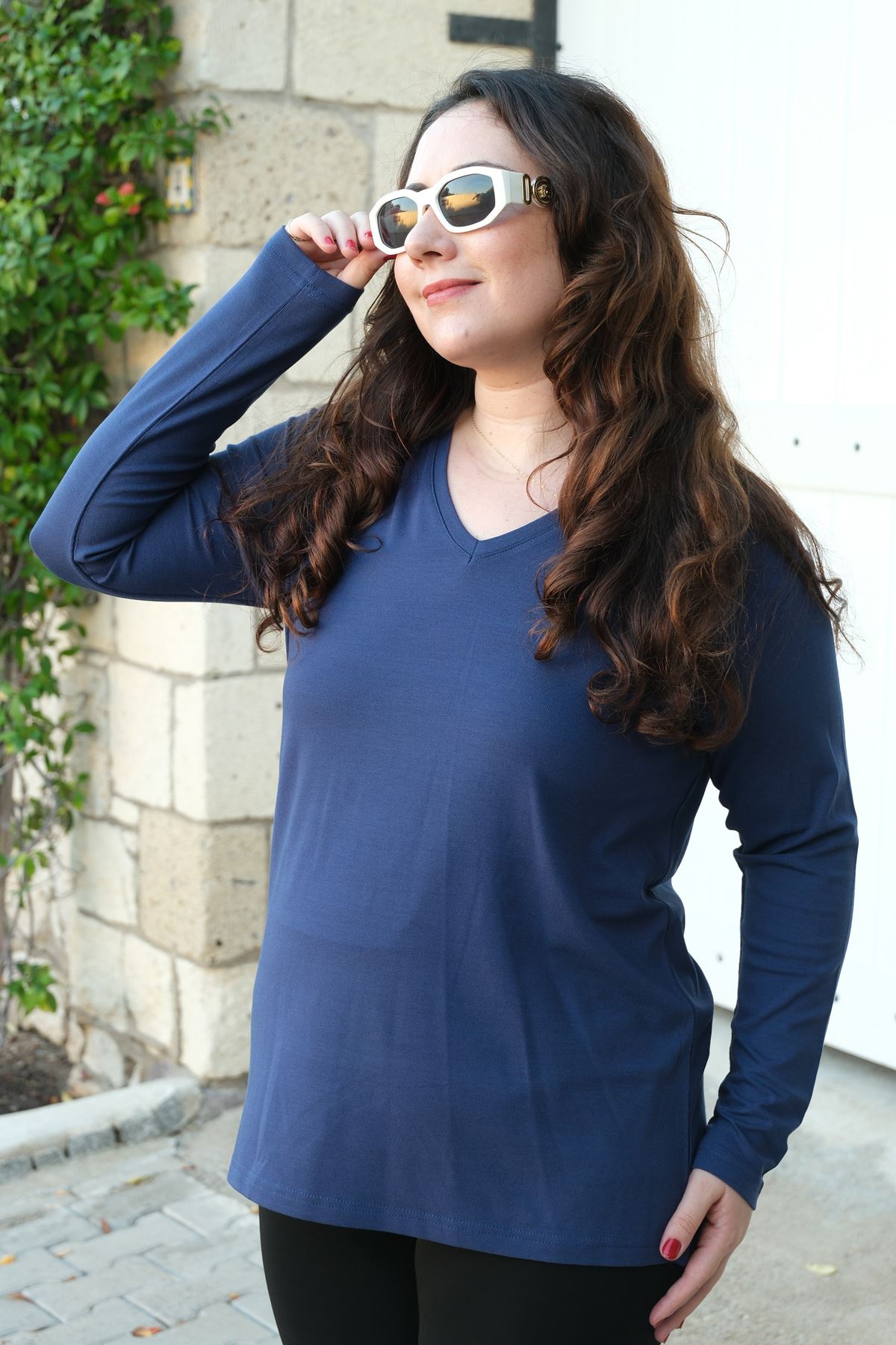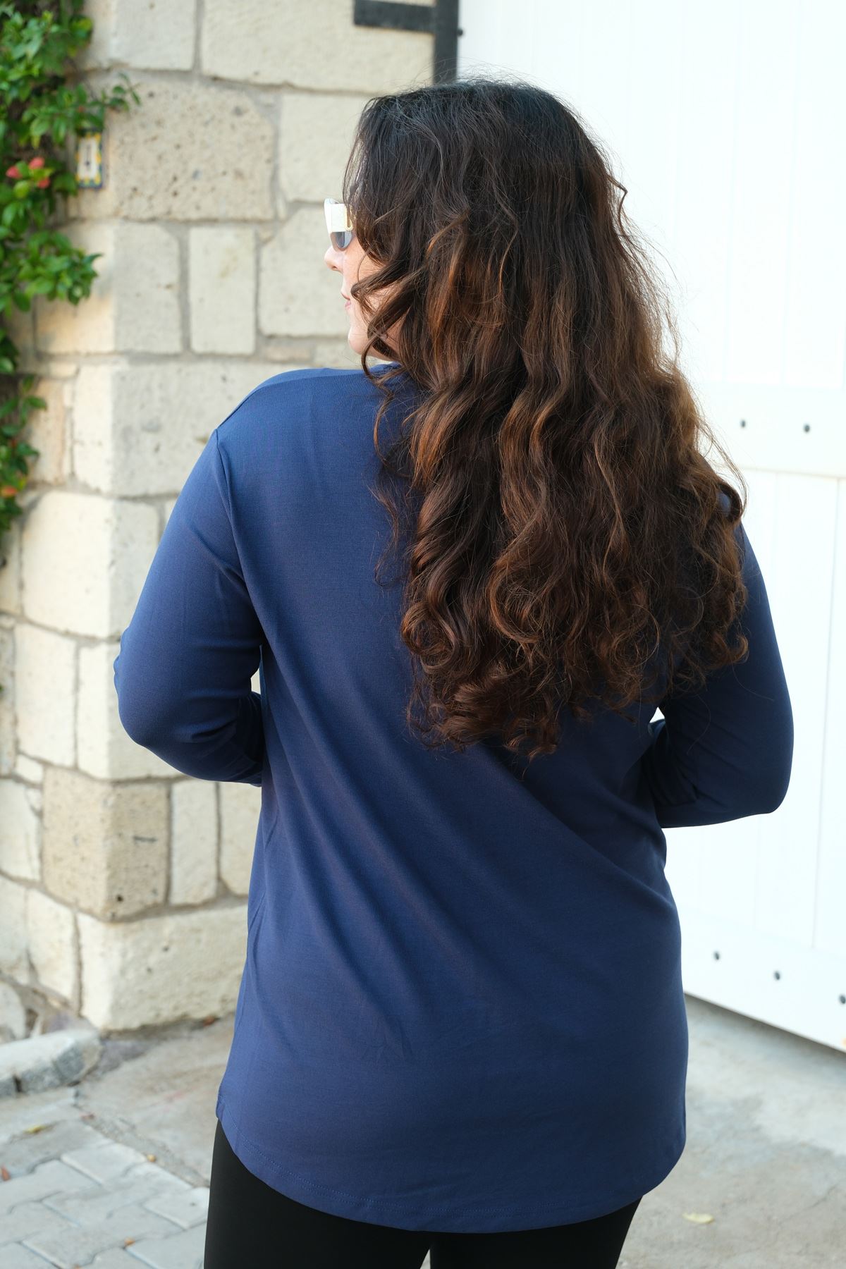 RENKTE BÜYÜK BEDEN V YAKA MAVİ TRİKO BLUZ