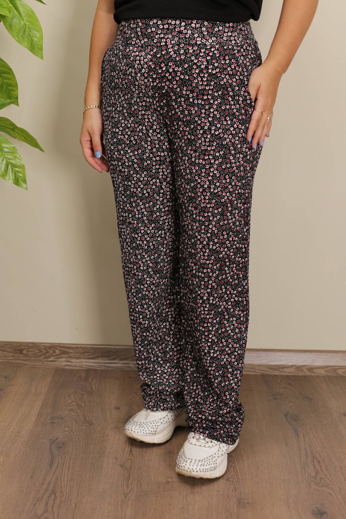 RENKTE DESENLİ ESNEK BÜRÜMCÜK BOL PAÇA PANTOLON