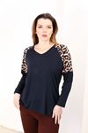 RENKTE KOLLARI LEOPAR DESEN KİREMİT BLUZ