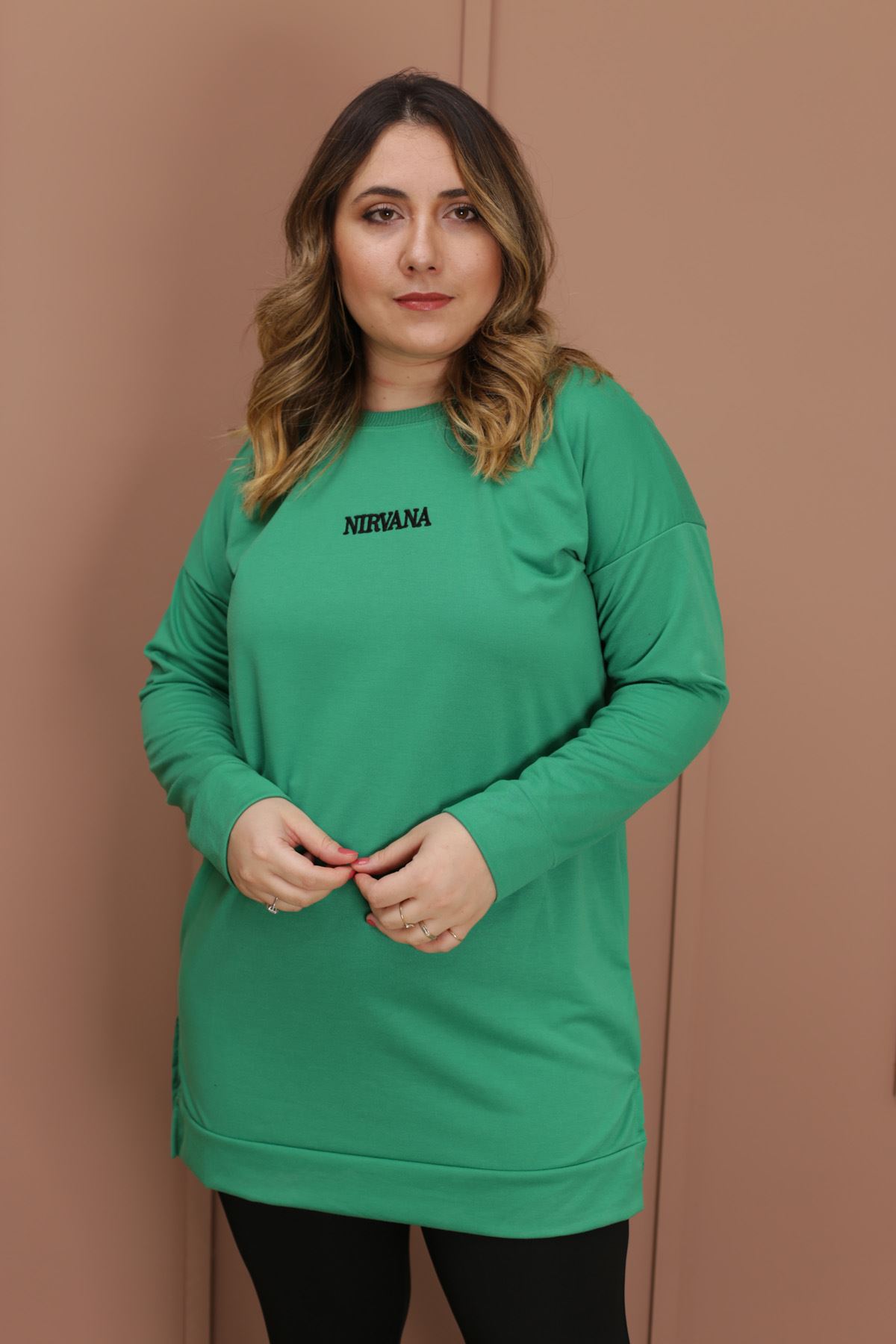 RENKTE BÜYÜK BEDEN ÇİZGİLİ YEŞİL SWEAT & TUNİK